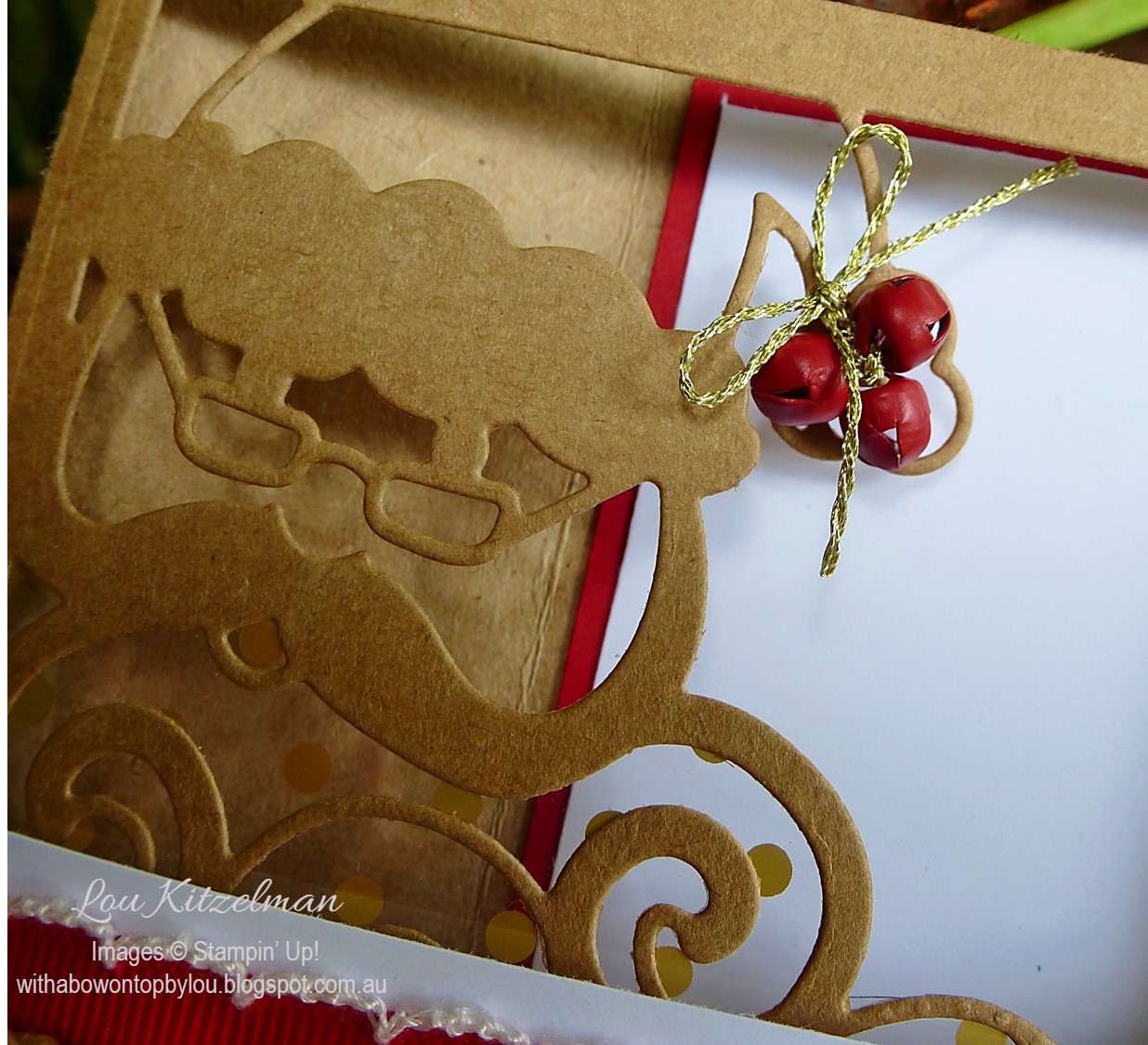 .....and some Mini Jingle Bells tied off with gold baker's twine (all from the Holiday Catalogue of course) and you have the perfect finishing touches.